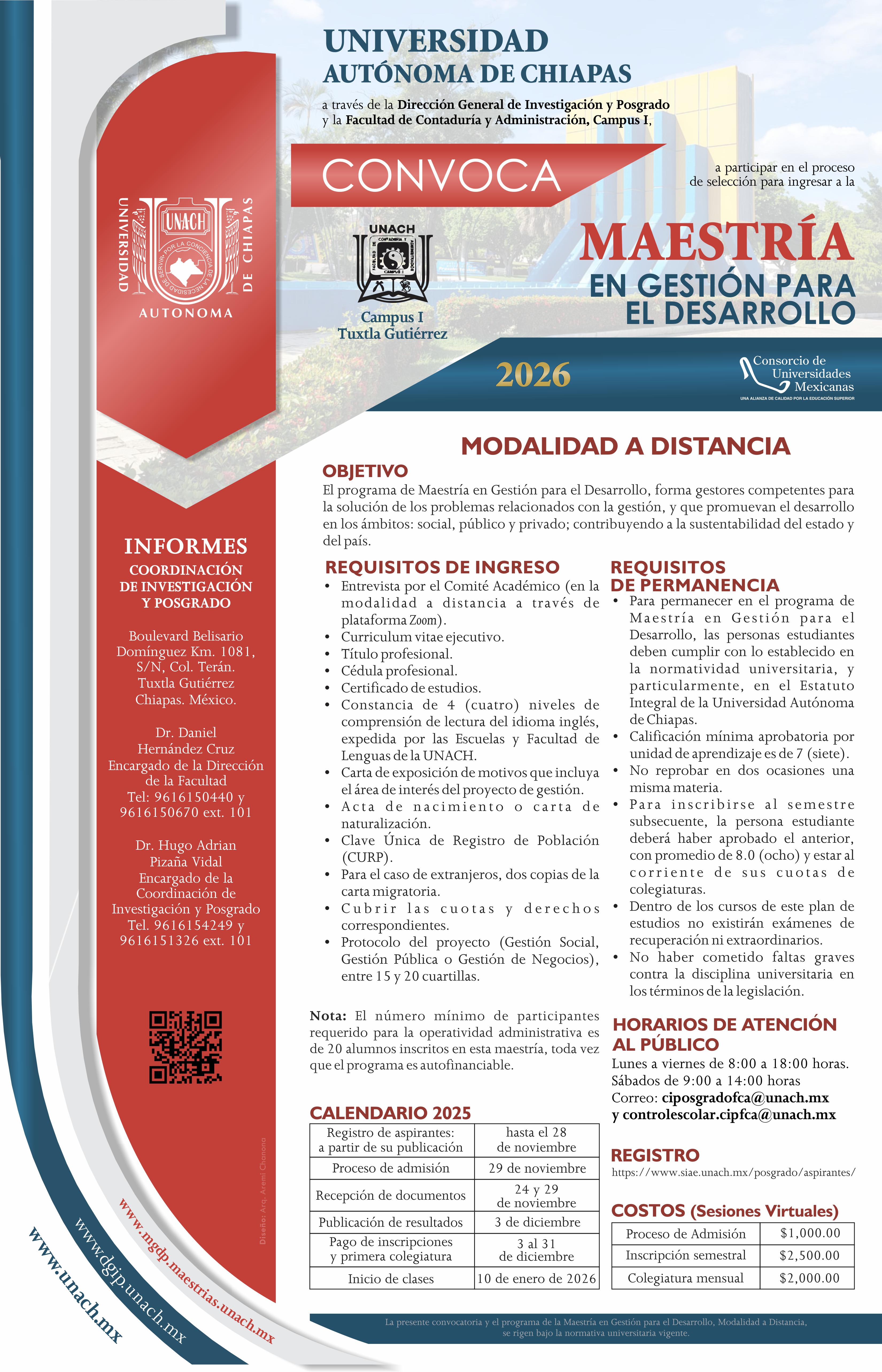 MAESTRÍA EN GESTIÓN PARA EL DESARROLLO, REGISTRO DE ASPIRANTES, HASTA EL 28 DE NOVIEMBRE DE 2025. CAMPUS I TUXTLA GUTIERREZ